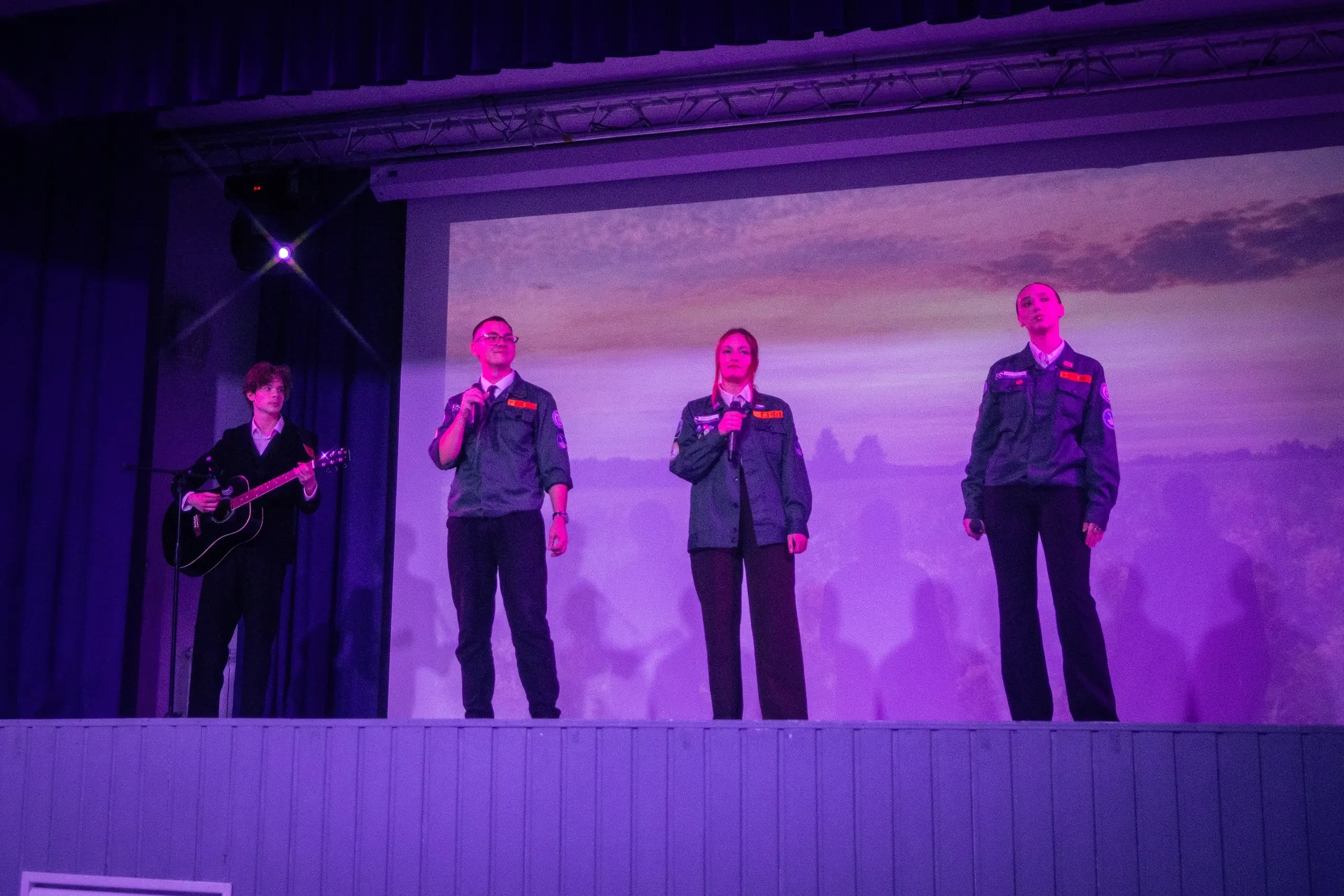 традиционная отрядная спевка под гитару и творческие выступления бойцов. С