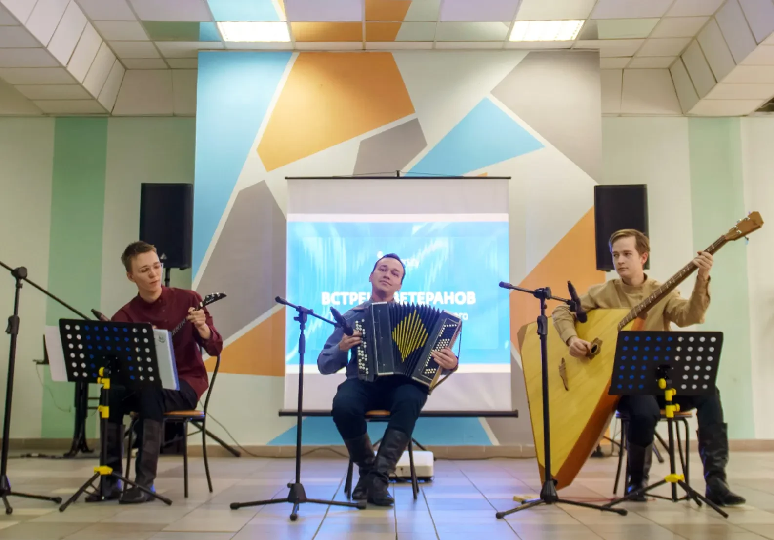 фотографиями. В музыкальной программе встречи приняли участие студенческий ансамбль
